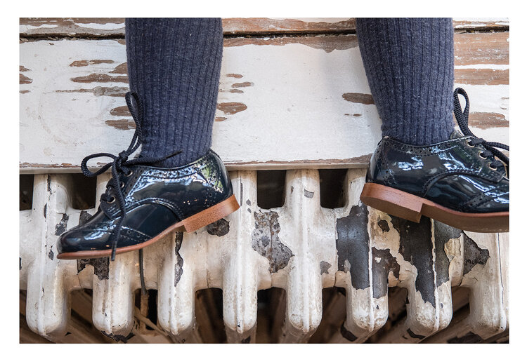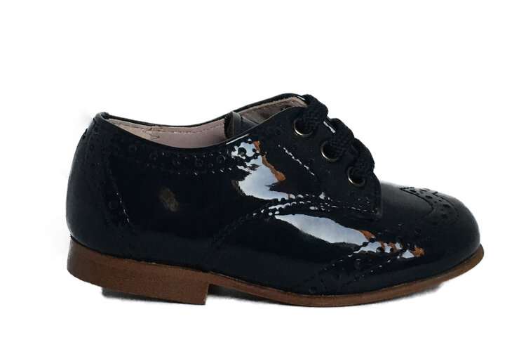 blauwe veterschoen in lakleer