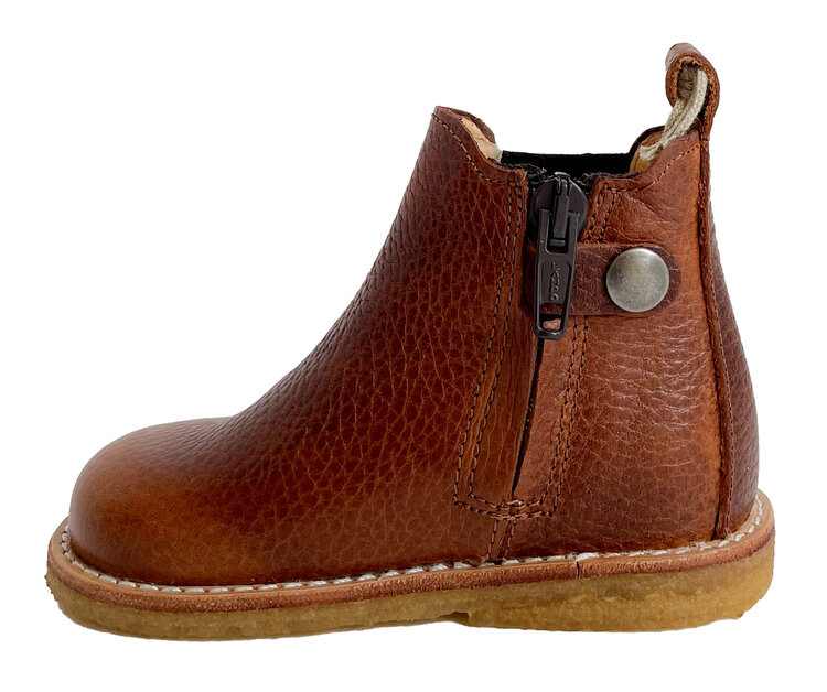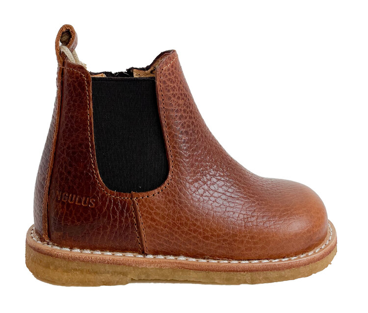 De klassieke chelsea boots in cognac van ANGULUS. Geschikt als eerste stapper. Heel gemakkelijk aan en uit met de rits.