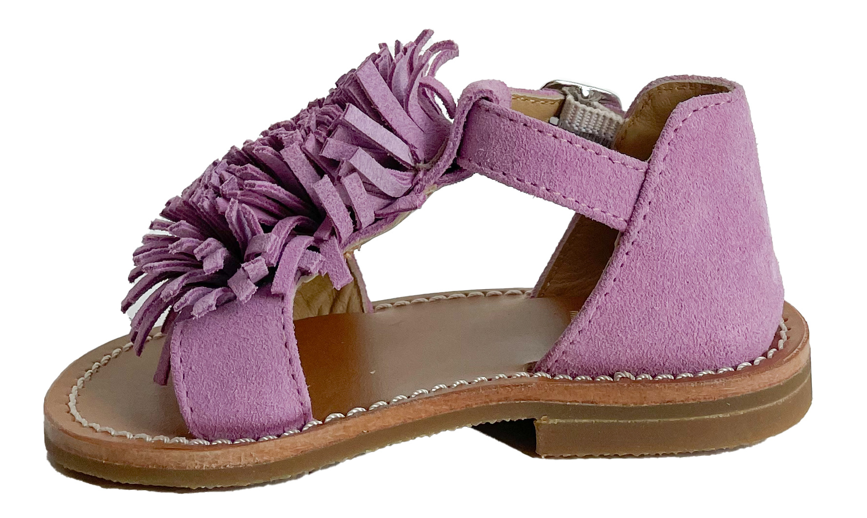 Leuke sandaal in roze-paars met pompon. Deze sandaal is voorzien van een gespsluiting.