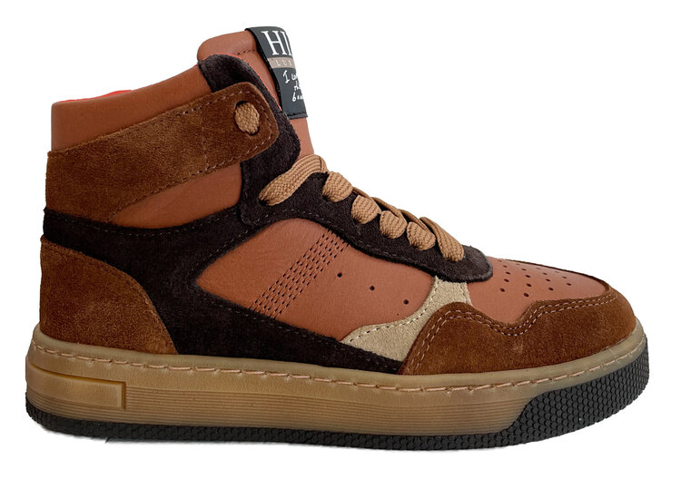 Hoge sneaker van HIP met veters en rits. Bestaat volledig uit leder, zowel vanbuiten als vanbinnen. Heeft een uitneembare zool.