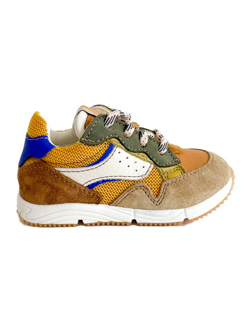 Sneaker in bruin met groen en blauw