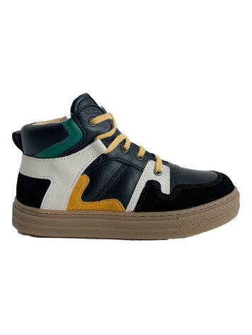 Sneaker zwart met ecru en geel