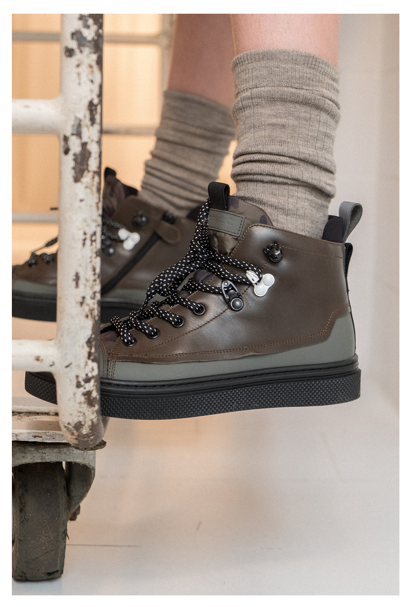 Kaki sneaker met veters en rits