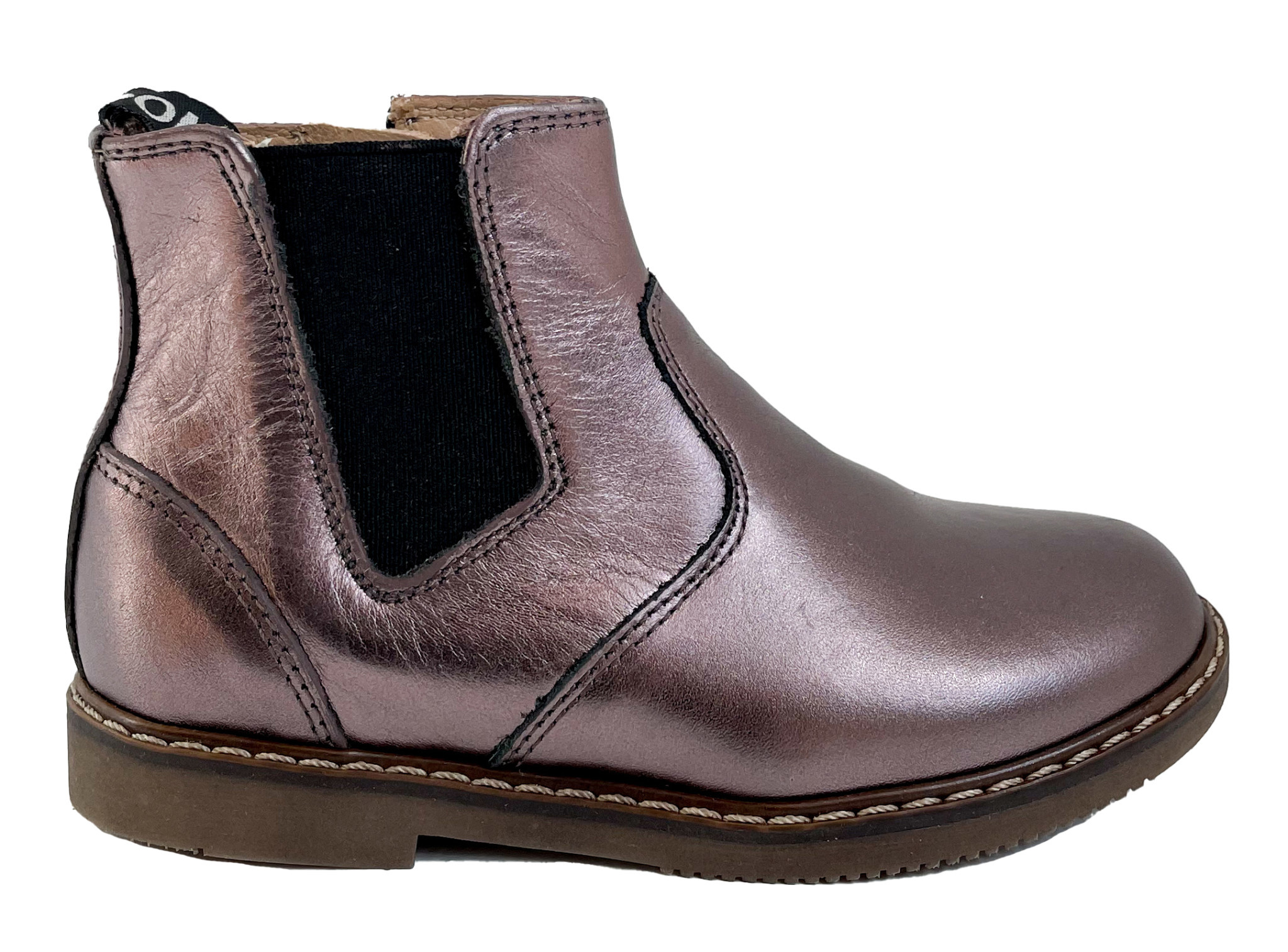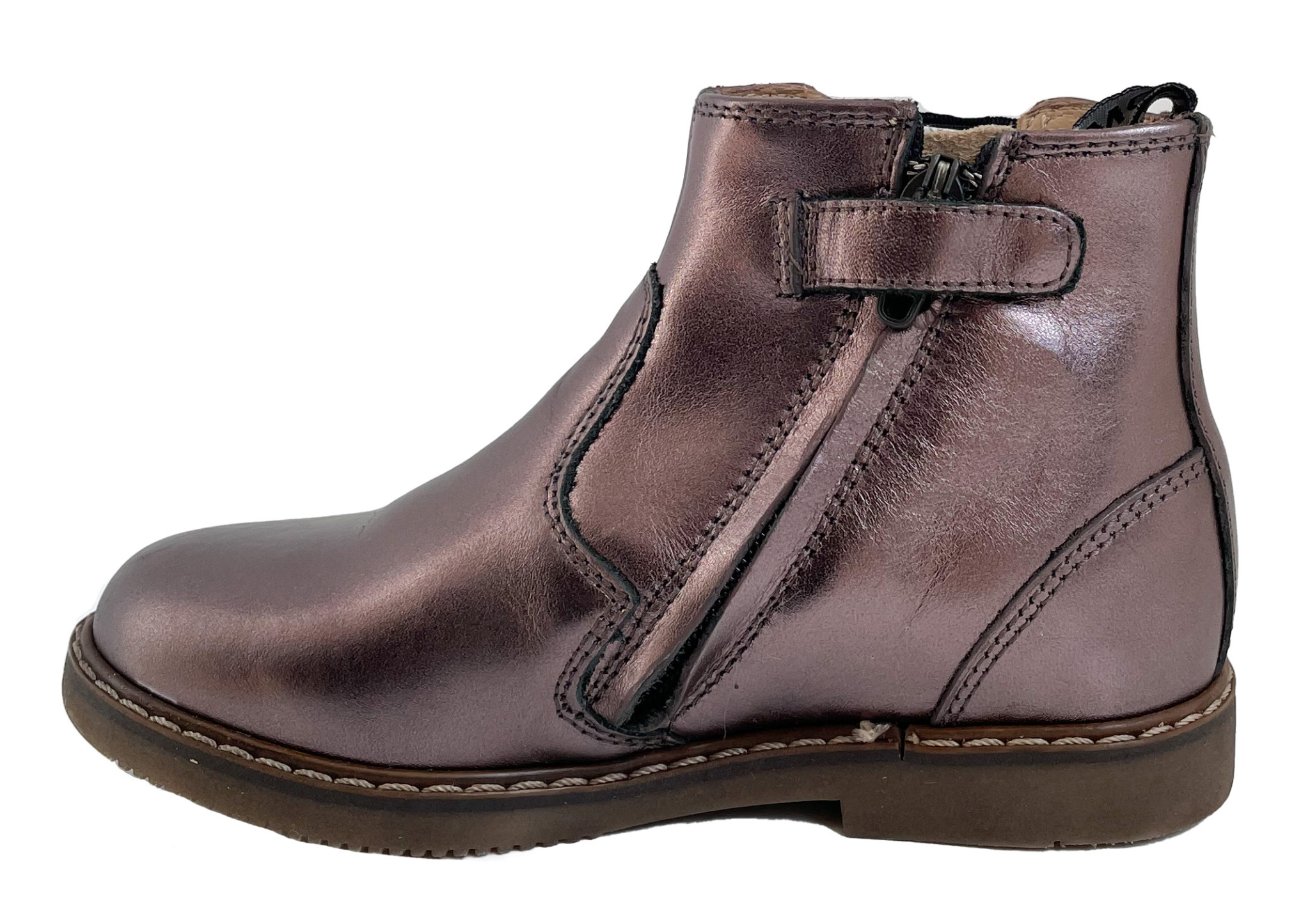 Korte laars in blinkend paars. Heel gemakkelijk aan en uit met de rits.