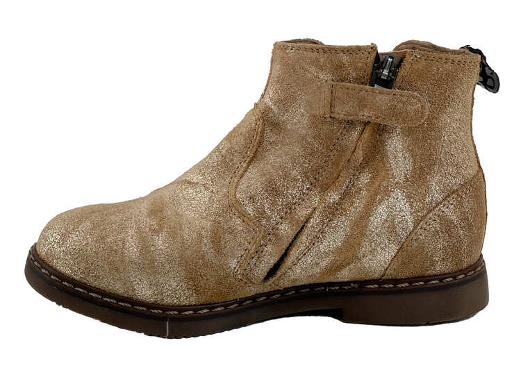 Korte laars in nubuck camel met een blink accent. Heel gemakkelijk aan en uit met de rits.