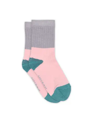 Kous in pink met motief in turquoise