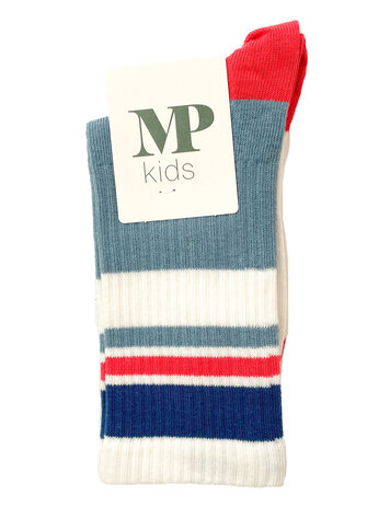 Kous wit met rood en blauwe strepen