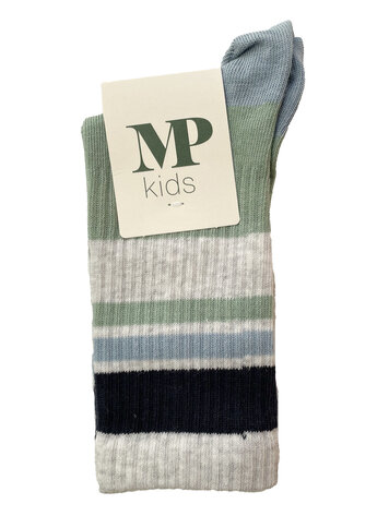 Kous grijs met blauw en groene strepen