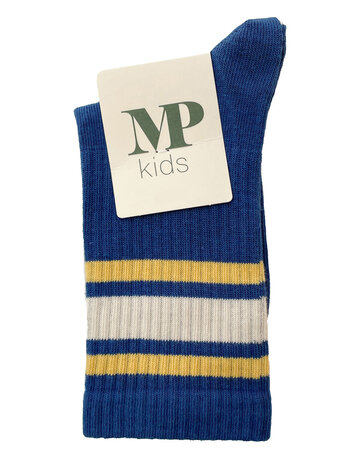 Kous blauw met gele en witte streep