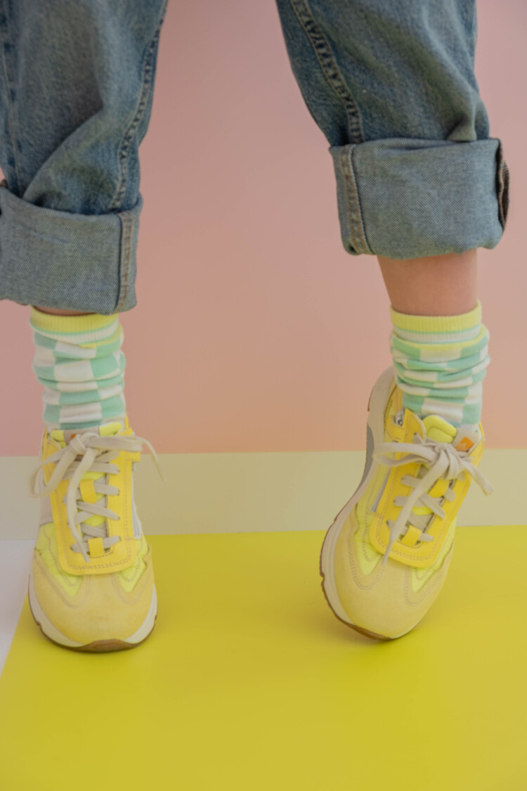 Super leuke runner in geel met zilver accent. Deze runner zit heel comfortabel.