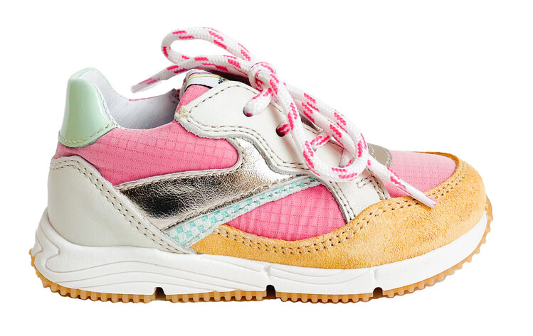 Runner in roze met oker en platino en ecru