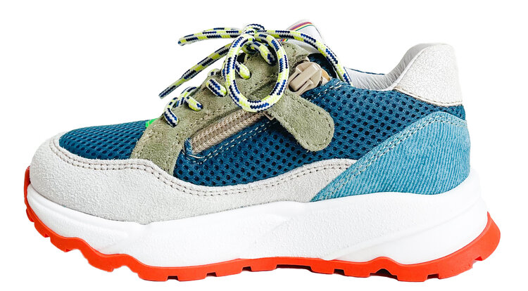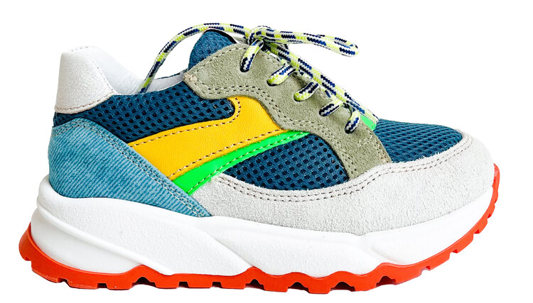 Runner met blauw, beige, geel en groen