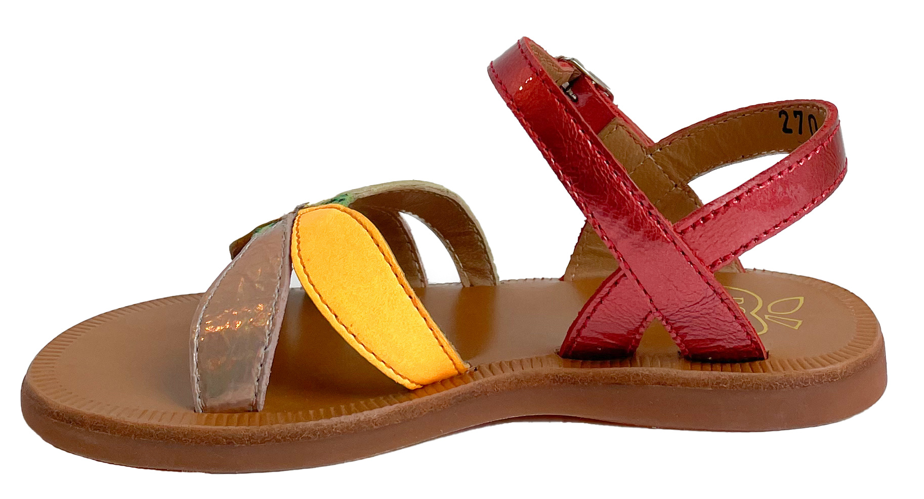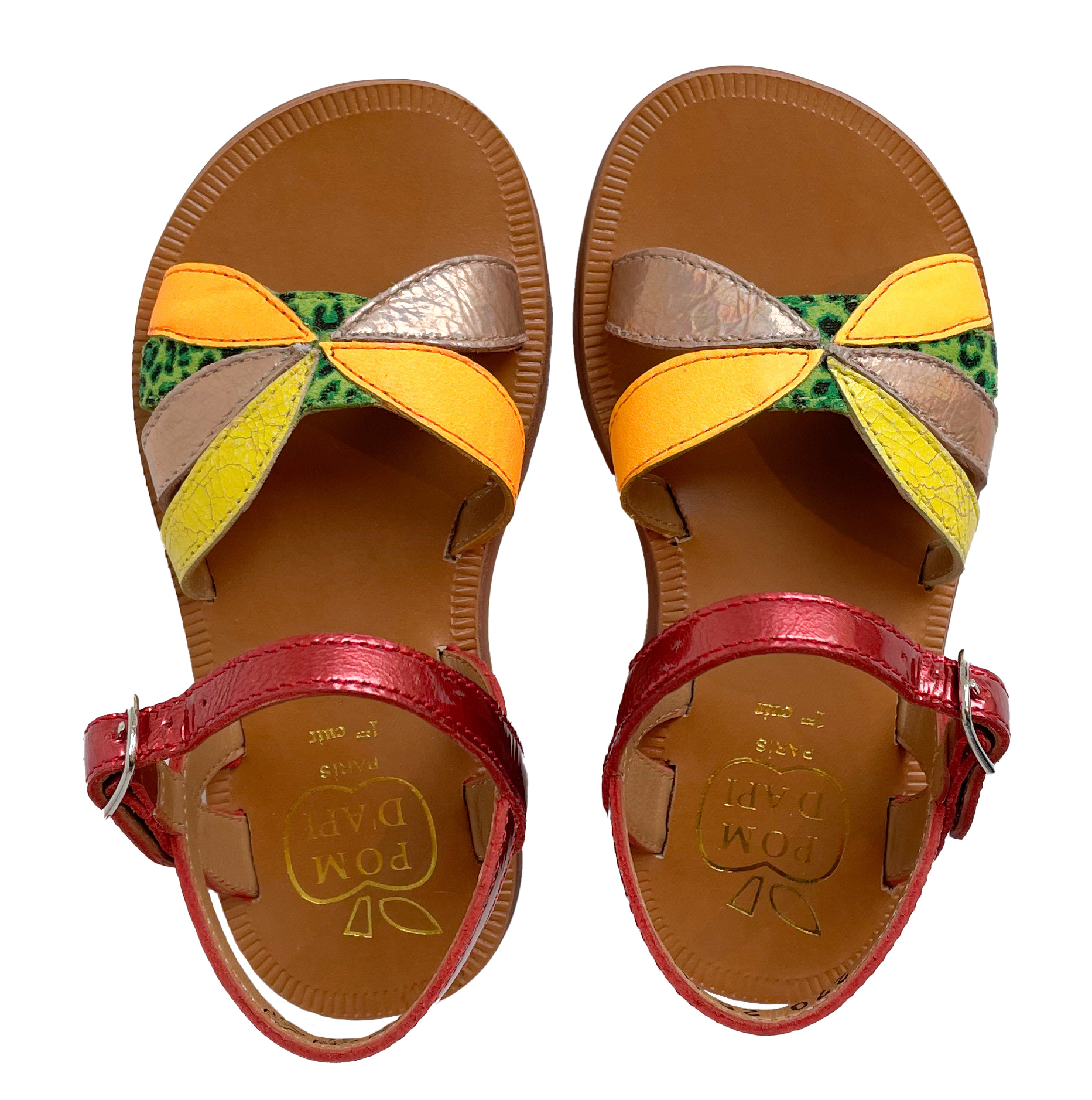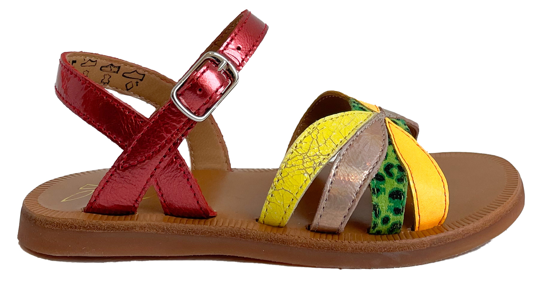 Kleurrijke sandaal met gesp. Dit model zit er elke zomer in, maar telkens in een andere kleurencombinatie. Door de verschillende kleuren is deze sandaal gemakkelijk te combineren.