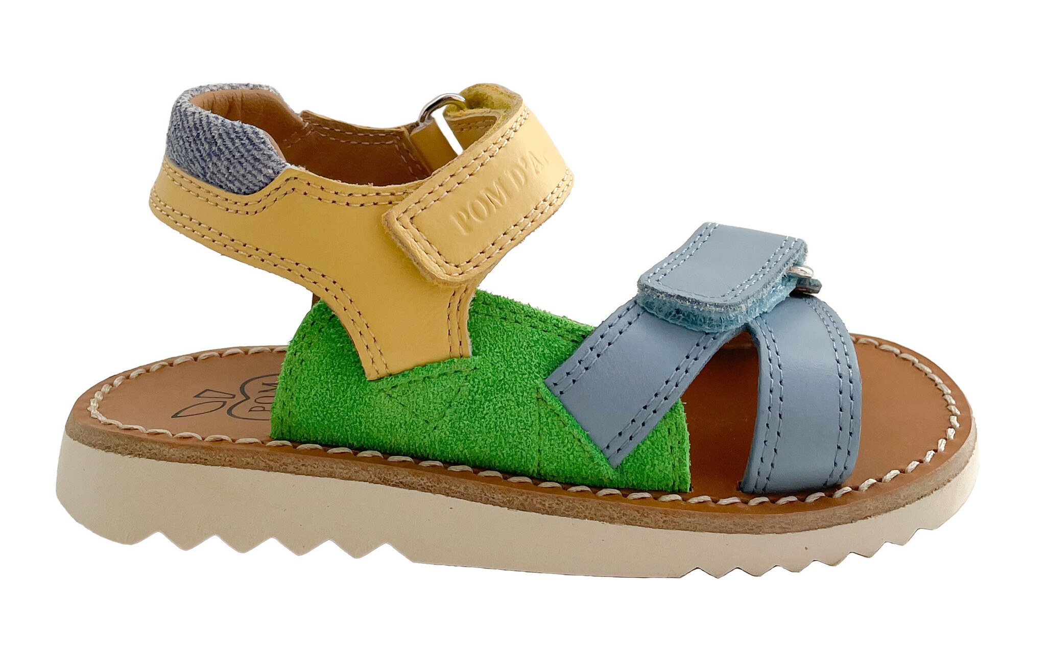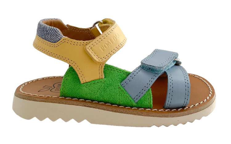 Sandaal met velcro in geel, blauw en groen