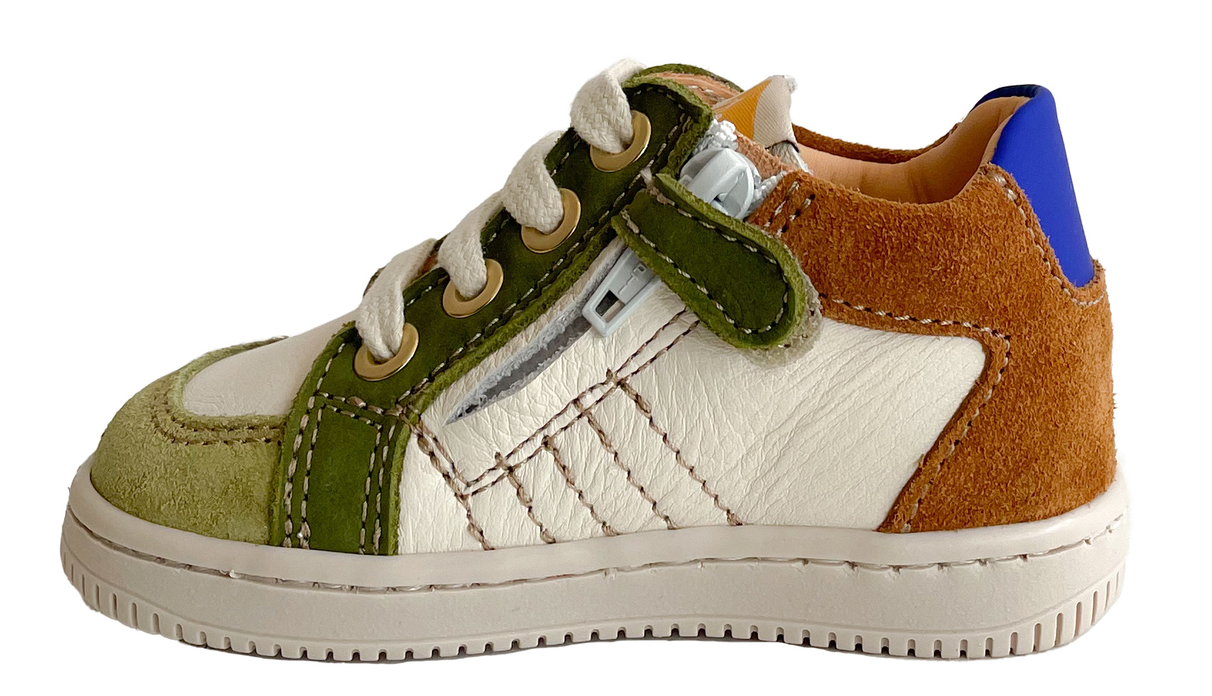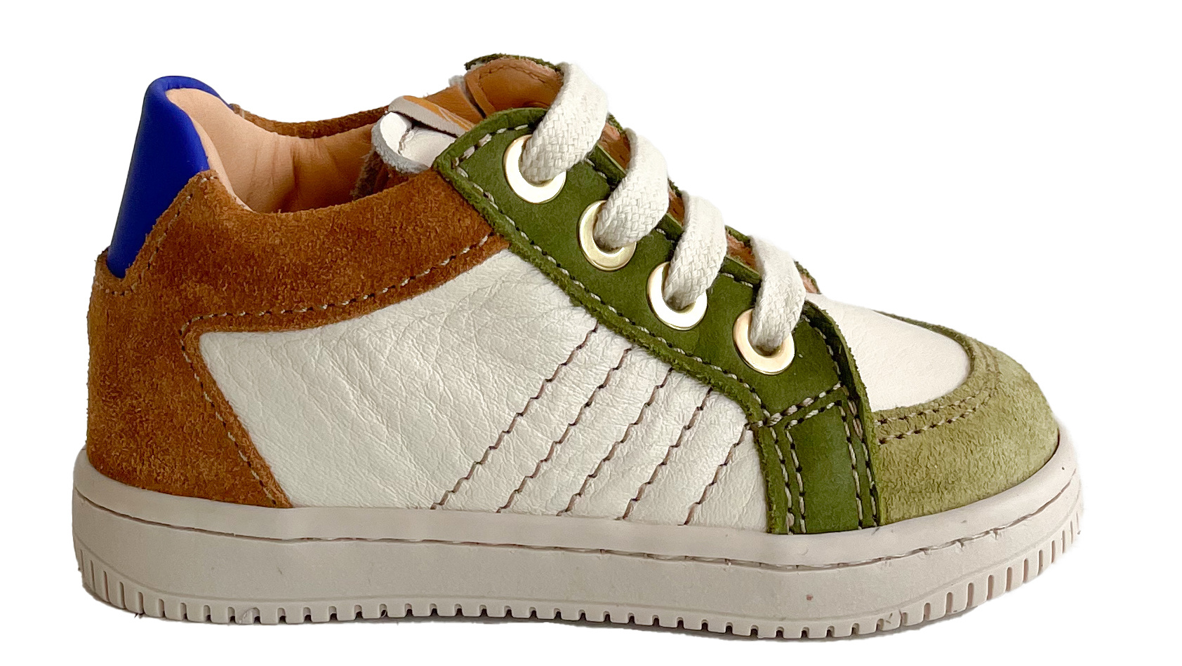 Een klassieker van Ocra, deze sneaker perfect voor de eerste stappers. Zit heel comfortabel. Bestaat volledig uit leder en nubuck. Gemakkelijk aan en uit met de rits. Met de veters kan je de sneaker perfect aanpassen aan de breedte van de voet.
