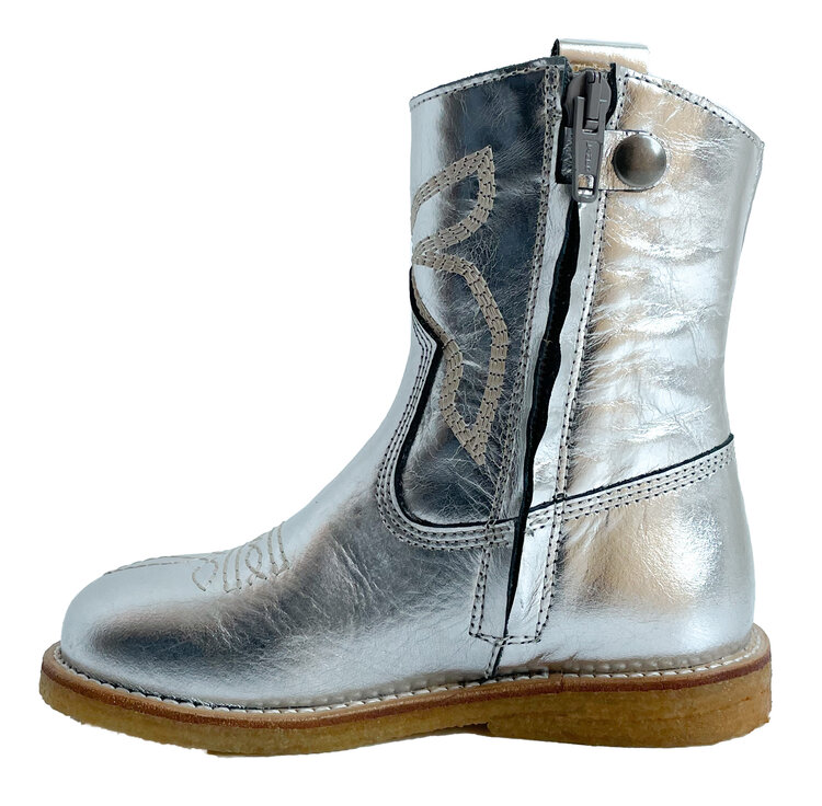 Super leuke 'stoere' zilveren laars met rits. Deze laars bestaat volledig uit leder met crêpe zool.